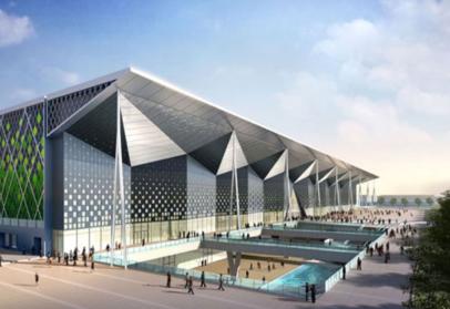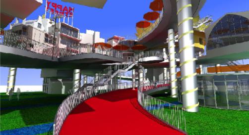 團(tuán)——26個平均用地規(guī)模約為2~3公頃的“展館團(tuán)”,每個“展館團(tuán)”可布置40~45個辦展單元,每個“展館團(tuán)”的總建筑面積約2~2.5萬平方米。每個團(tuán)按方便和就近的原則,設(shè)置小型餐飲、購物、電信、廁所、母嬰服務(wù)等公共服務(wù)設(shè)施。