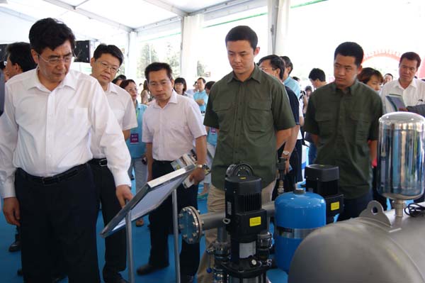 由國(guó)家發(fā)改委、節(jié)能中心、北京市政府聯(lián)合舉辦的中國(guó)北京國(guó)際節(jié)能展于2012/06/10 在京舉行,熊貓集團(tuán)作為國(guó)內(nèi)唯一一家供水設(shè)備制造商受邀參展。作為展會(huì)節(jié)能重點(diǎn)企業(yè),北京市長(zhǎng)郭金龍等領(lǐng)導(dǎo)到熊貓產(chǎn)品展示臺(tái)前仔細(xì)詢(xún)問(wèn)企業(yè)發(fā)展和產(chǎn)品節(jié)能 情況,并在展臺(tái)前留影。